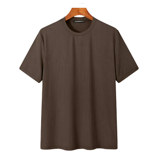 TheighT Crew Neck Cable Knit Striped T-Shirt